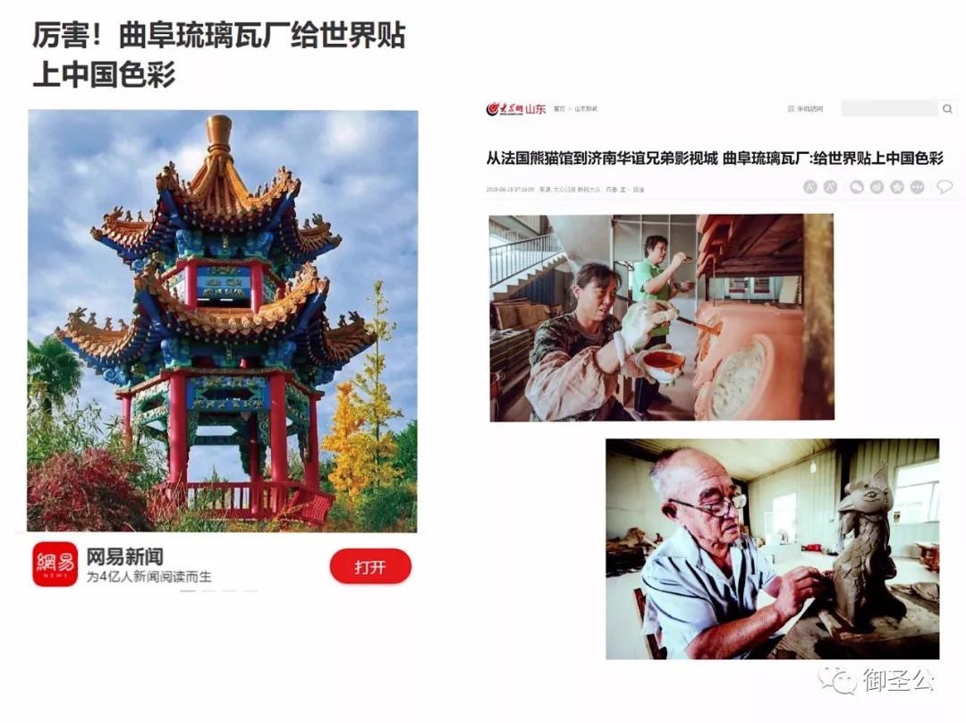 御圣公作为国家非物质文化遗产的“守艺人”在尽可能保持传统手工技艺的基础上充分的对接市场需求,用新的形式满足公众日趋多元的文化需要。从法国的中国熊猫馆,到济南的华谊兄弟影视城,都是御圣公的匠心之作!来自曲阜的御圣公瓦片早已走出国门,成为全世界瞩目的中国元素。